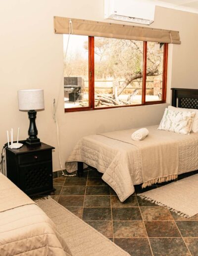 A spacious, self-catering unit that sleeps up to 16 guests in four en-suite rooms. Includes a communal kitchen, lapa, boma, and cold-water swimming pool — perfect for family or group getaways.